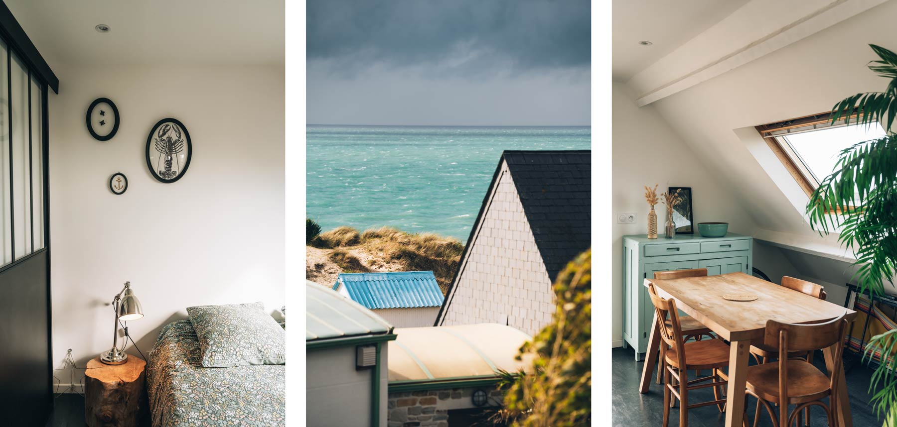 Pour ce nouveau voyage dans la Manche, nous avons posé nos valises dans cette petite commune du littoral, face aux célèbres cabines de plage. Depuis notre appartement « Face à la Mer », nous étions aux premières loges pour les contempler à toute heure et flâner sur la plage, au gré des caprices de la météo. Isabelle et son mari ont entièrement rénové l’immeuble. Une partie accueille des locations saisonnières, l’autre des locataires à l’année. Nous avons eu la chance de séjourner dans l’appartement portant si bien son nom, avec son grand balcon et ses fenêtres de toit ouvertes sur les cabines et l’horizon marin. Conçu pour un couple, ce gîte parfaitement équipé, s’est aussi révélé idéal avec un enfant, Isabelle ayant eu la gentillesse de nous prêter un lit parapluie.