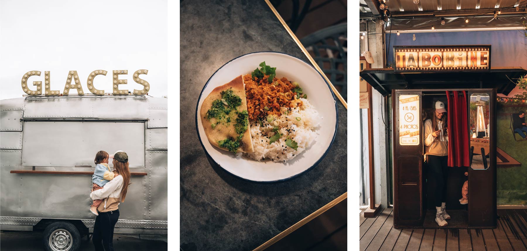 Pour le déjeuner, rdv dans un lieu insolite et très sympa. Ouvert en 2023, l‘ancienne gare de Barneville s’est reconvertie en food court. Camion à glace, pizzas au feu de bois, stand de cuisine végétarienne, moules frites, sans oublier de bonnes crêpes ! A cause de la pluie battante, nous nous installons dedans sur un canapé cosy avec un plaid. Aux beaux jours, le grand jardin doit être bien plaisant ! Une excuse pour revenir 🙂