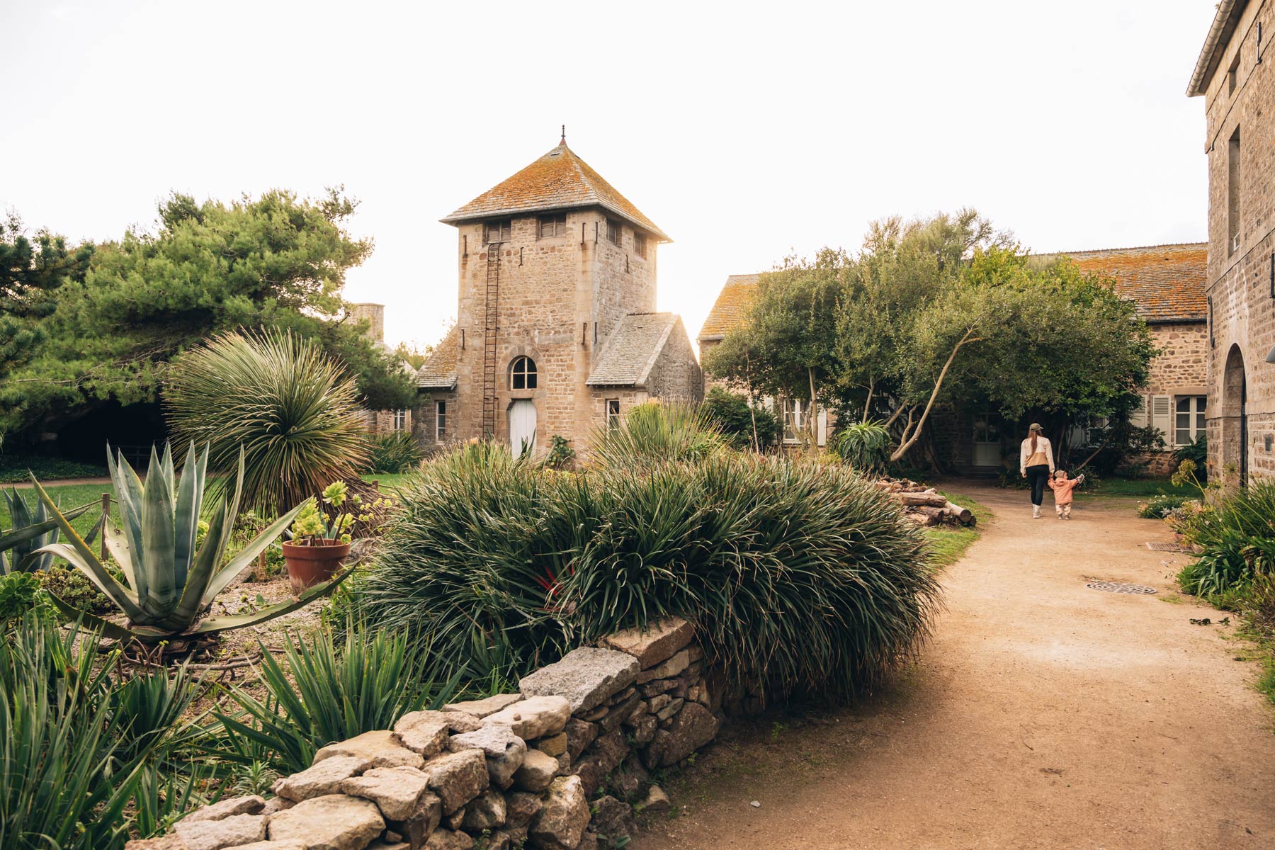 Prochaine étape : le petit port de Saint-Vaast-la-Hougue, d’où nous embarquons pour rejoindre l’île Tatihou, joyau naturel de 28 hectares seulement. La marée est basse, les parcs à huîtres se dévoilent, mais pas de problème, le bateau amphibie s’adapte, tantôt naviguant, tantôt roulant. Une traversée originale qui amuse autant les grands que notre petite aventurière ! Si nous connaissions déjà Tatihou lors des grandes marées, c’est la première fois que nous y passons la nuit. Les Maisons de Tatihou, trois demeures rénovées avec soin, offrent tout le confort et l’intimité nécessaires pour savourer pleinement ce trésor caché de la Manche. Avec son musée maritime, son fort et la célèbre tour Vauban, classée au patrimoine mondial de l’UNESCO, mais aussi ses jardins exotiques, l’île se révèle être une escale aussi surprenante qu’enrichissante. Si proche et pourtant si dépaysante, elle offre un réel sentiment d’évasion. Petite mais riche en expériences.